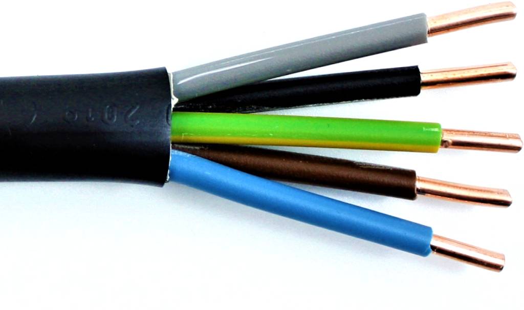 Kabel CYKY-J 5x6 (CYKY 5Cx6) instalační měděný vodiče modrá-žlutozelená-hnědá-černá-šedá